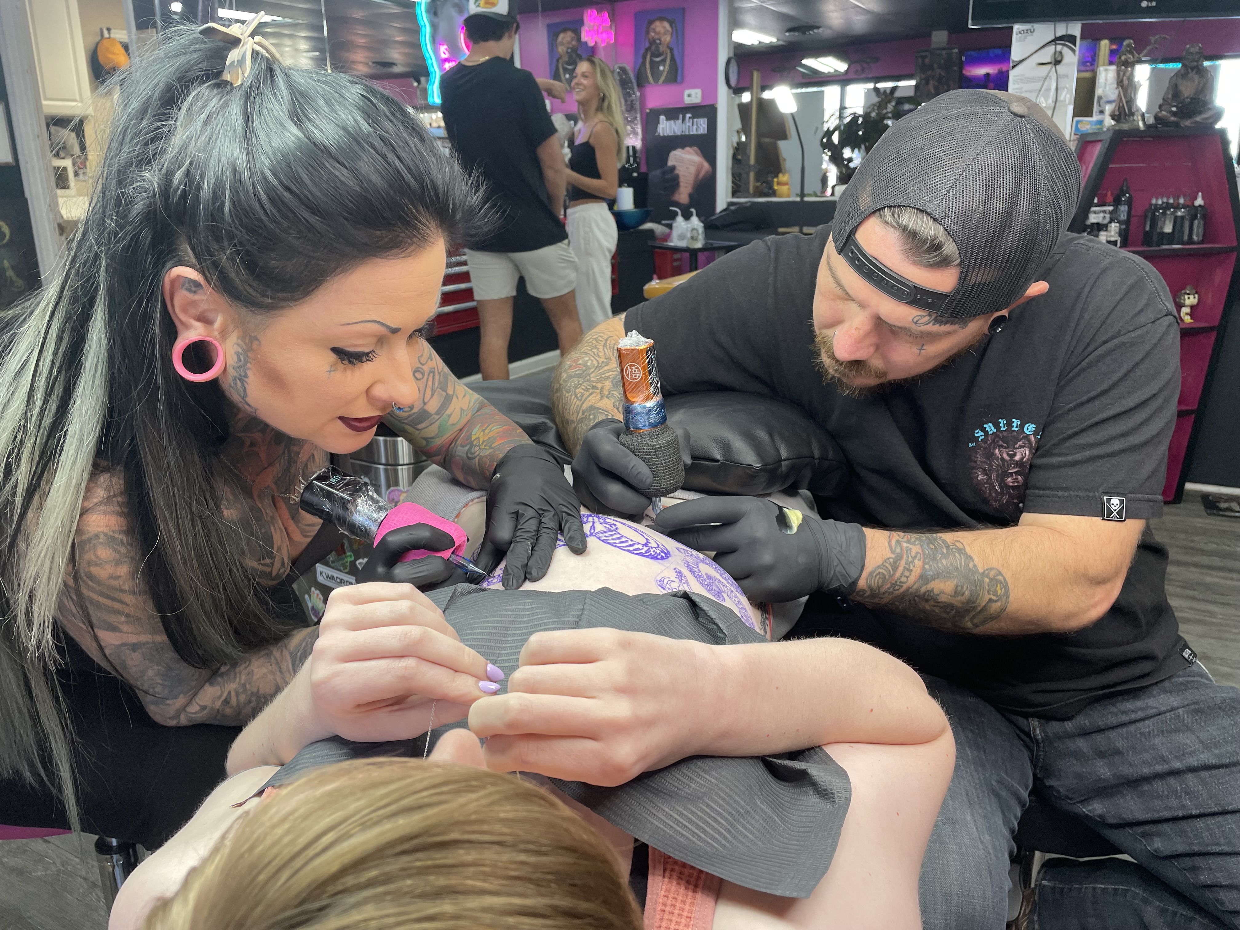 Enjoys Black & Grey, fine lines, & Neo-Traditional. He’s also offers permanent makeup and will take on anything that comes his way!